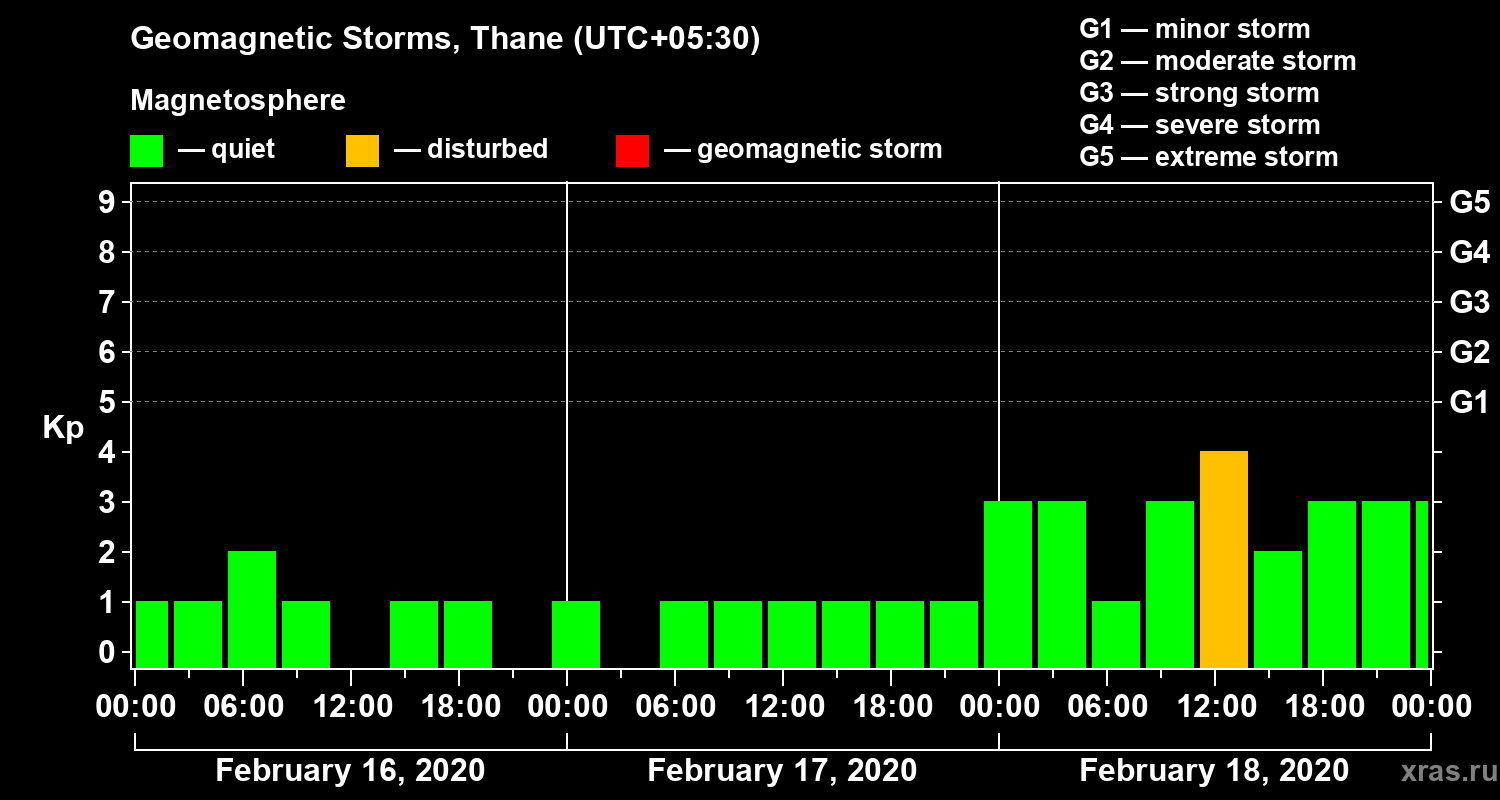 Geomagnetic storms in Thane in February 2020