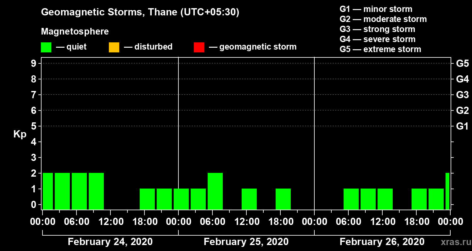 Changes in the geomagnetic index Kp from February 24 to 26, 2020 for mid latitudes