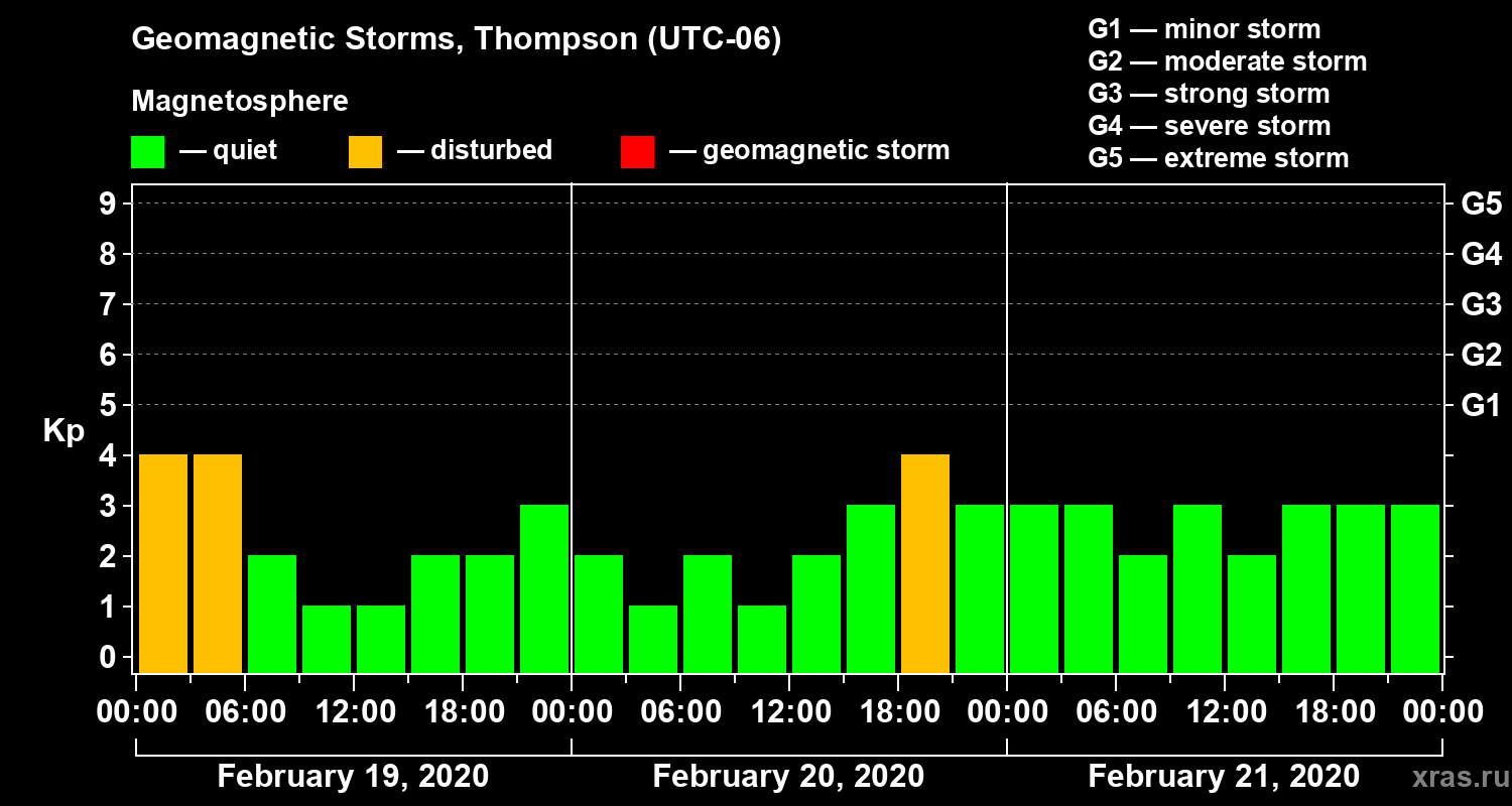 Geomagnetic storms in Thompson — Feb 21, 2020