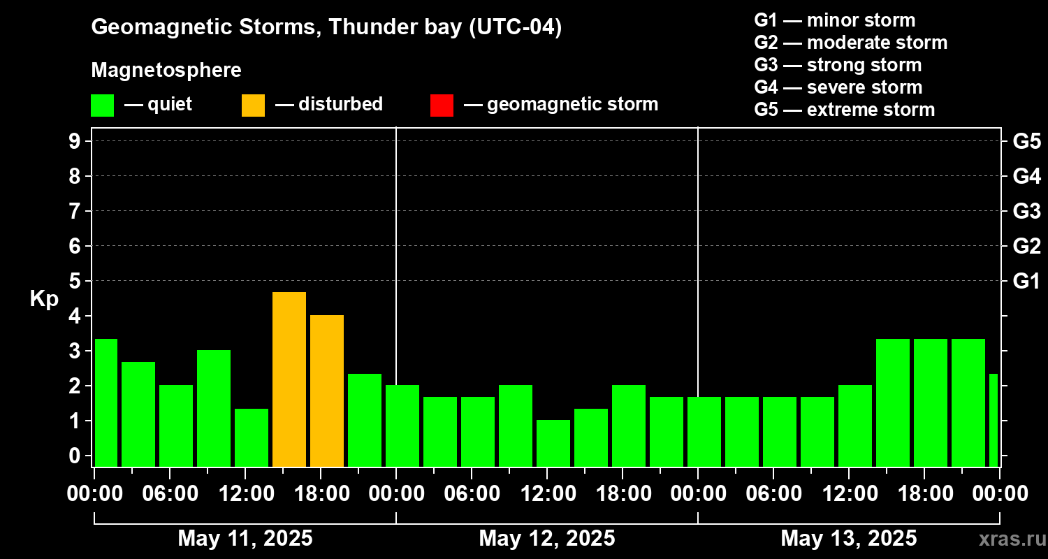 Geomagnetic storms in Thunder bay — May 13, 2025