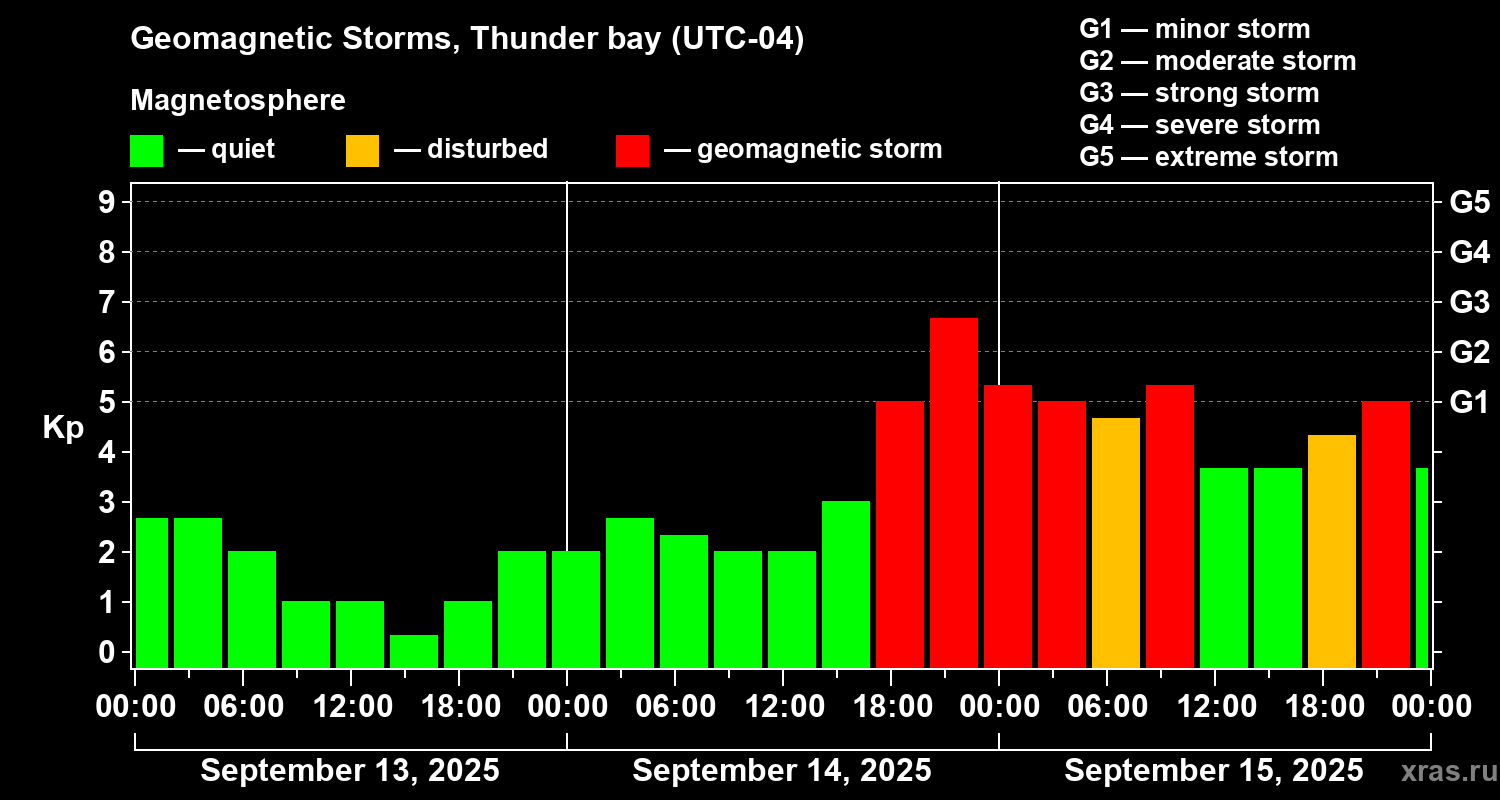 Geomagnetic storms in Thunder bay — Sep 15, 2025