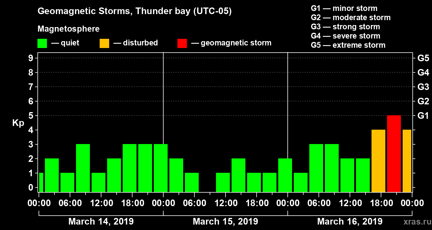 Geomagnetic storms in Thunder bay on Mar 16, 2019