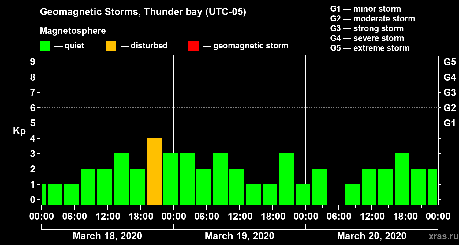 Geomagnetic storms in Thunder bay on Mar 20, 2020