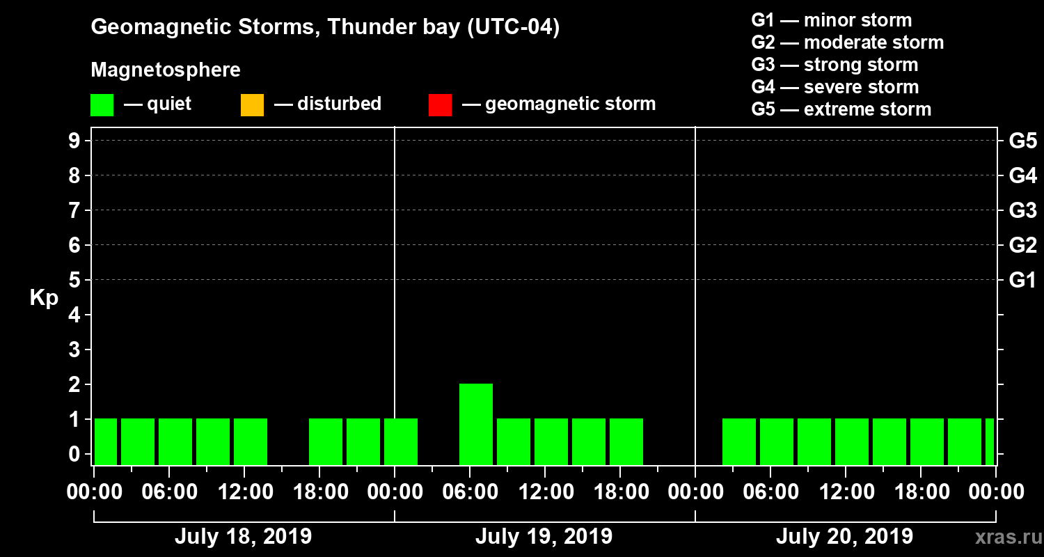 Geomagnetic storms in Thunder bay — Jul 20, 2019