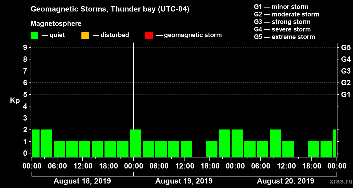 Geomagnetic storms in Thunder bay on Aug 20, 2019