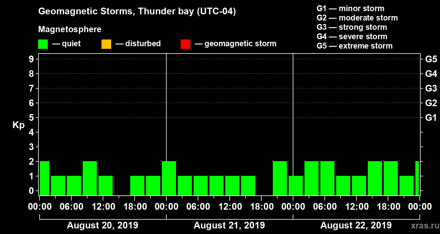 Geomagnetic storms in Thunder bay on Aug 22, 2019