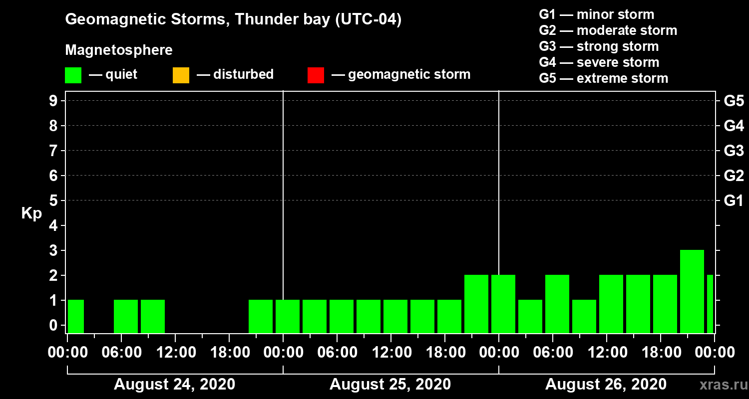 Geomagnetic storms in Thunder bay — Aug 26, 2020