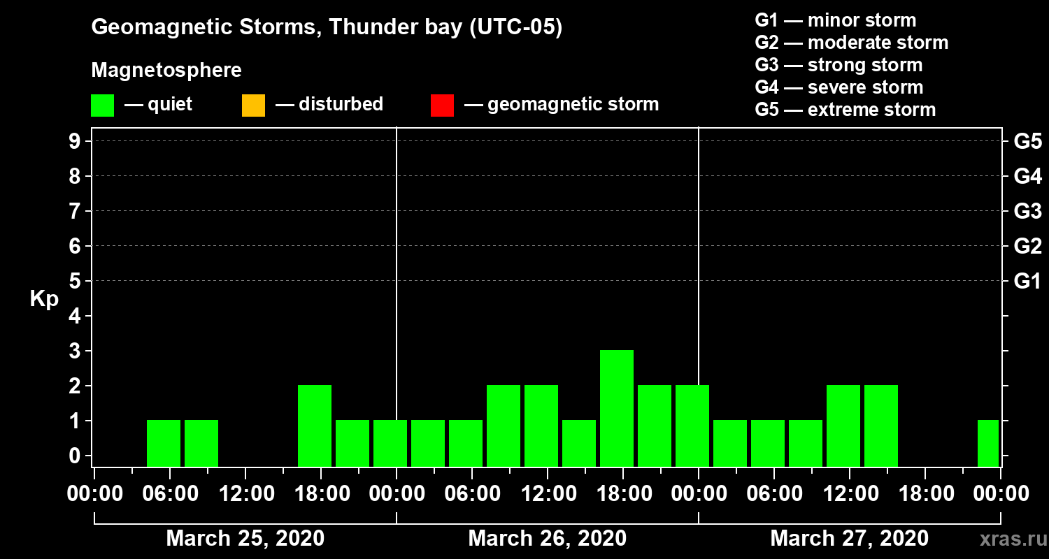 Geomagnetic storms in Thunder bay on Mar 27, 2020