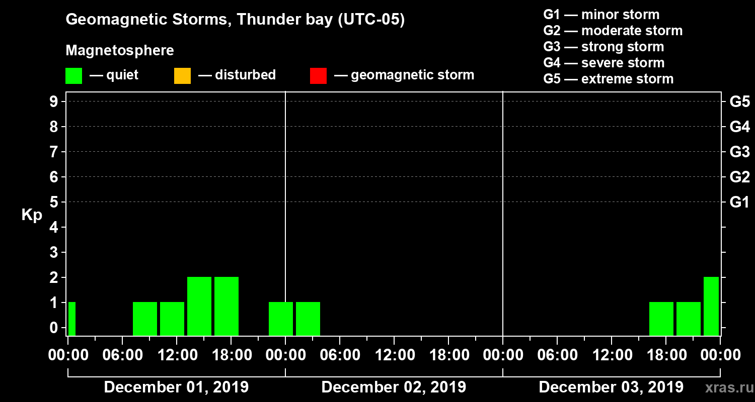 Geomagnetic storms in Thunder bay on Dec 03, 2019