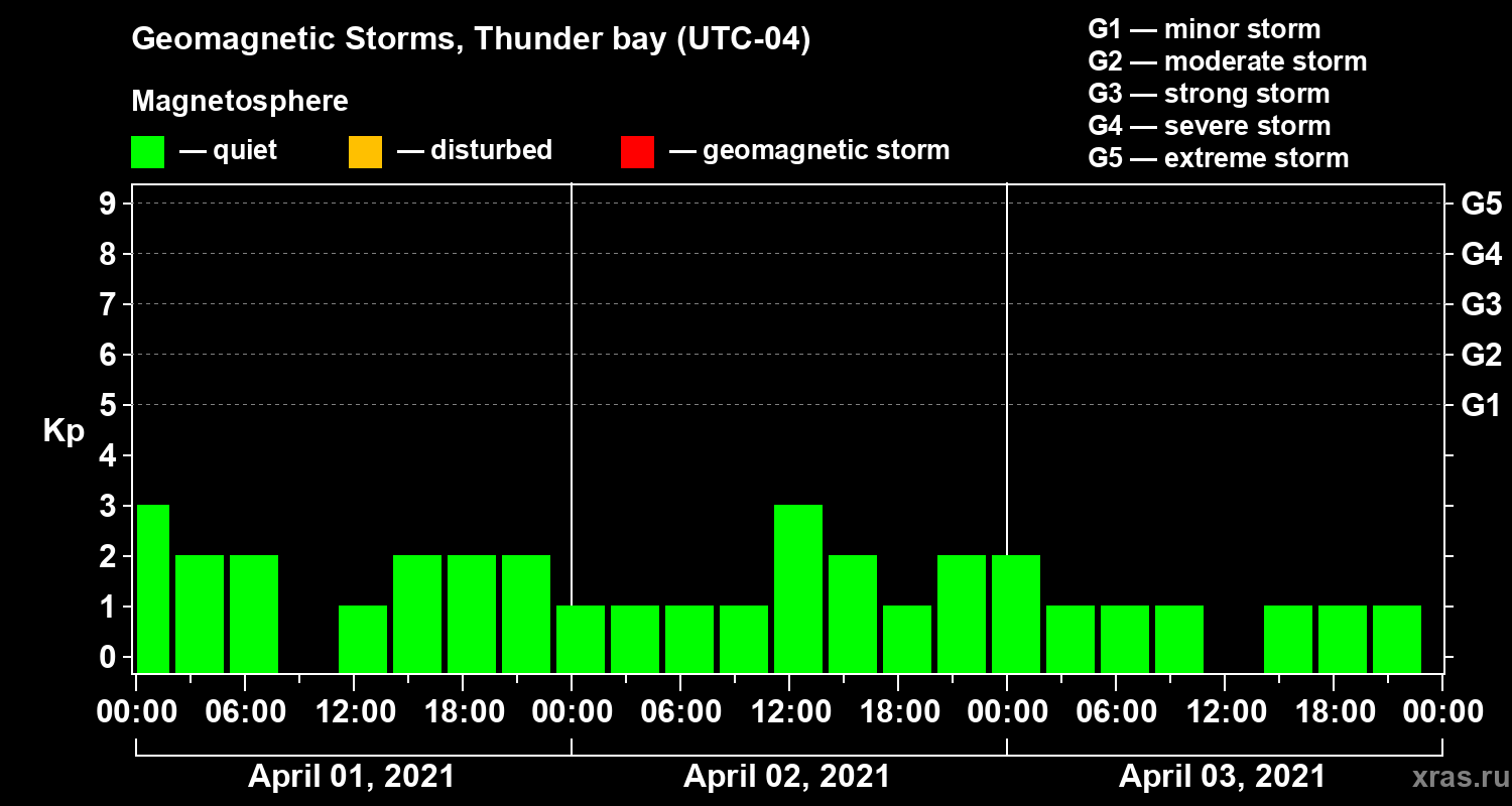 Geomagnetic storms in Thunder bay — Apr 03, 2021
