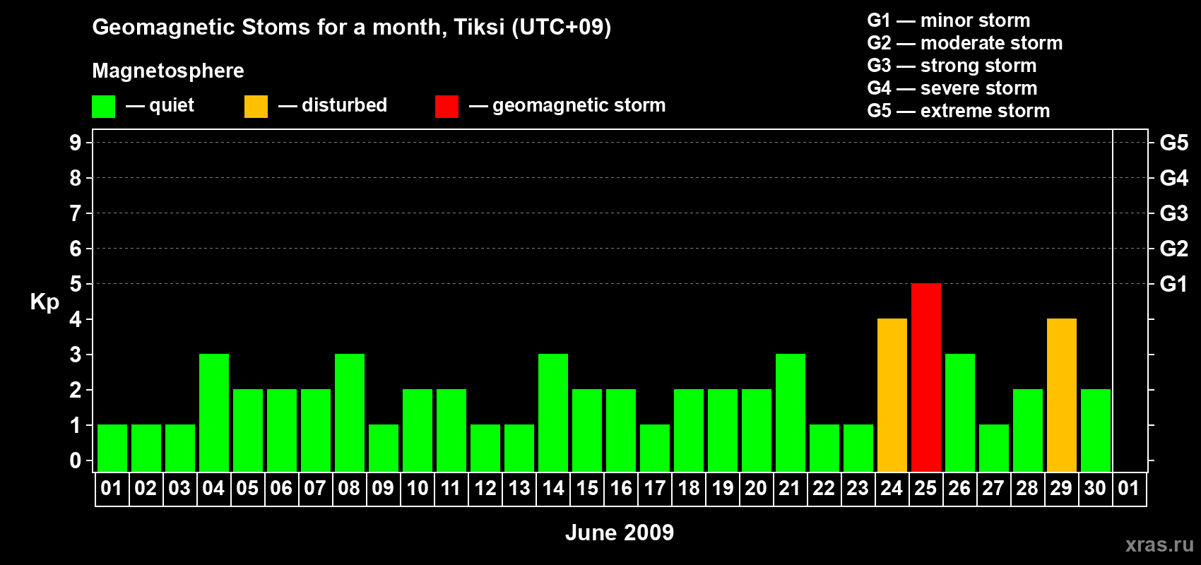 Geomagnetic storms in Tiksi — Jun 30, 2009