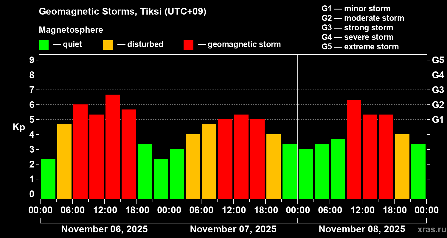 Geomagnetic storms in Tiksi — Nov 08, 2025