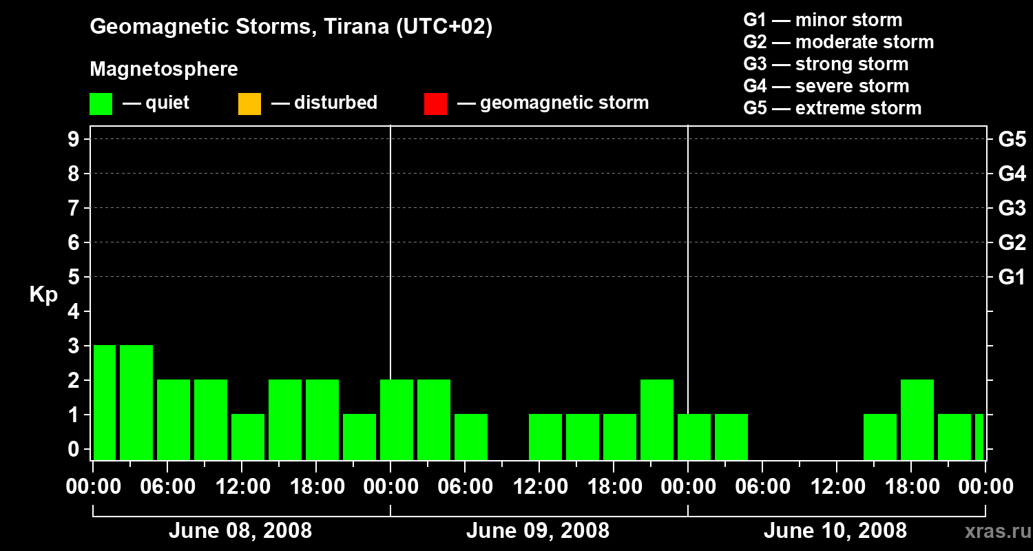 Geomagnetic storms in Tirana — Jun 10, 2008
