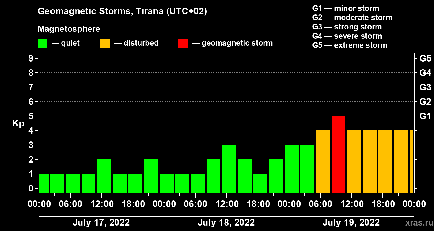 Geomagnetic storms in Tirana in July 2022