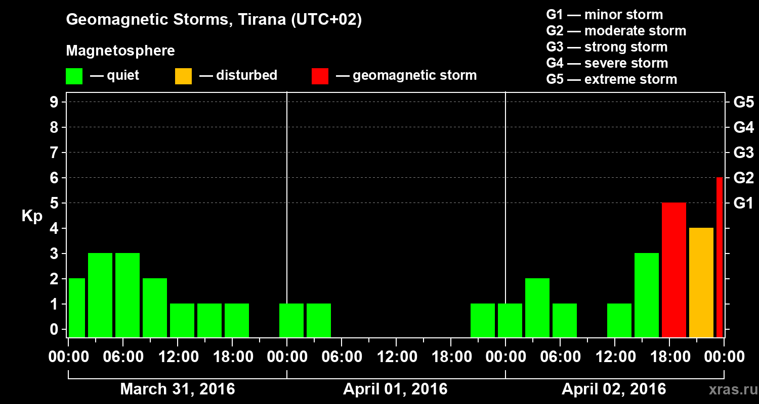 Geomagnetic storms in Tirana — Apr 02, 2016