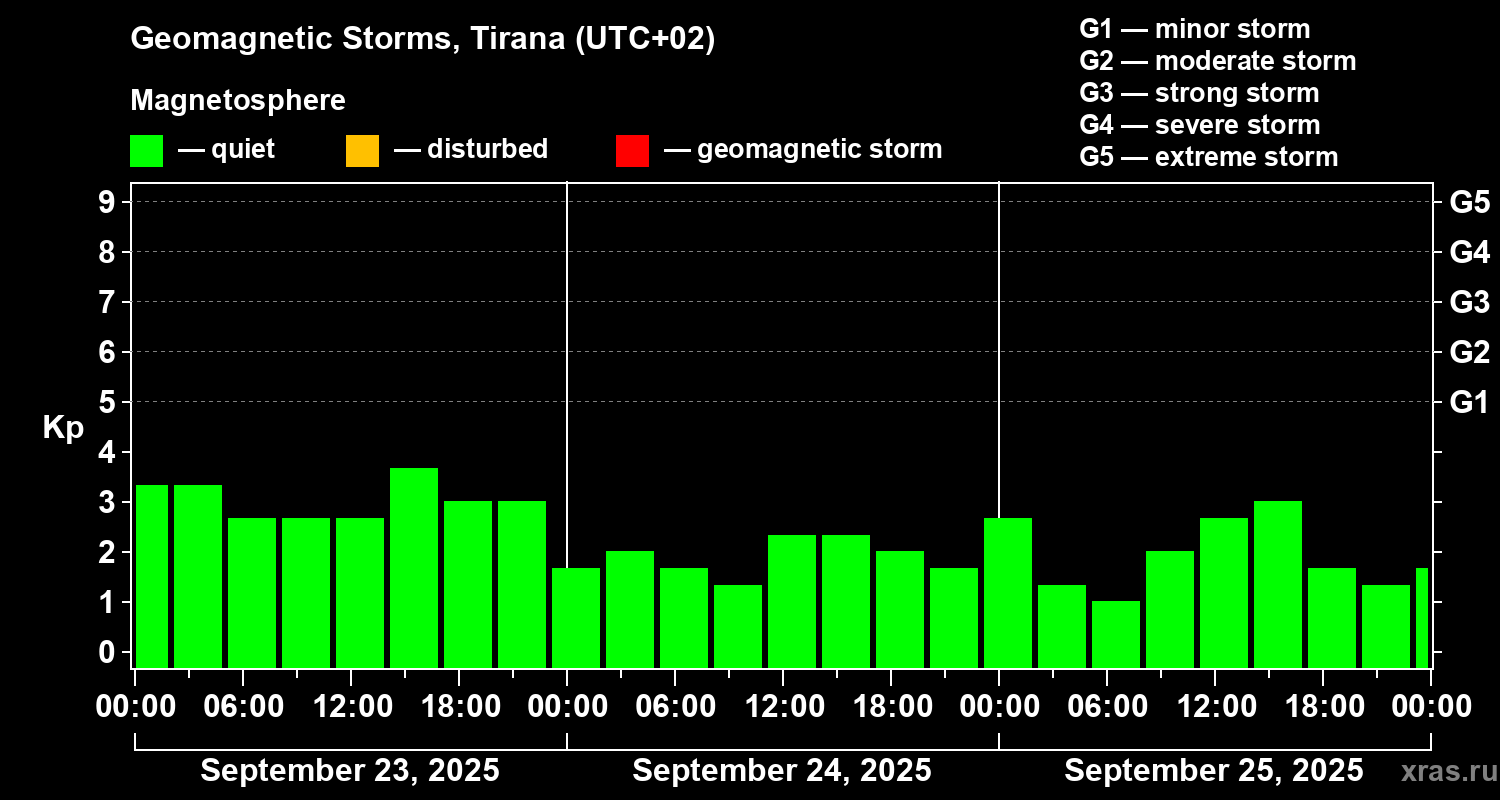 Geomagnetic storms in Tirana — Sep 25, 2025