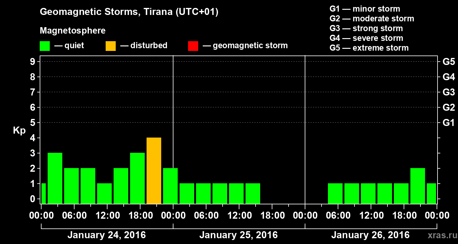 Geomagnetic storms in Tirana — Jan 26, 2016