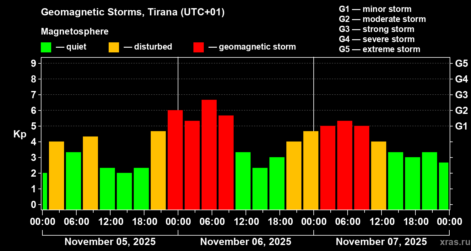 Geomagnetic storms in Tirana — Nov 07, 2025