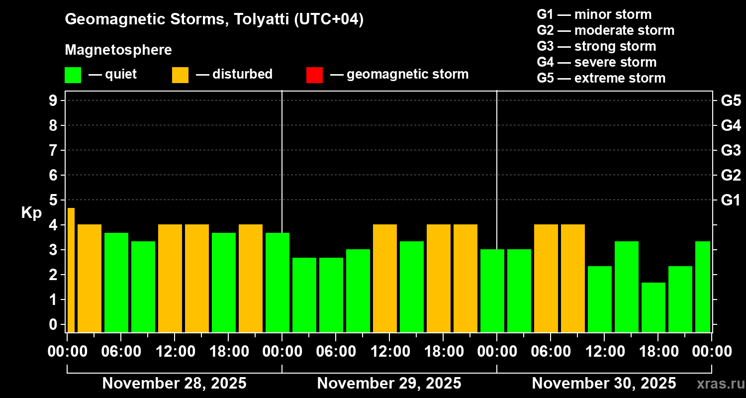 Geomagnetic storms in Tolyatti — Nov 30, 2025