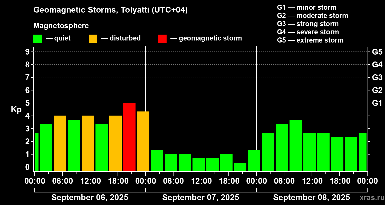Geomagnetic storms in Tolyatti — Sep 08, 2025