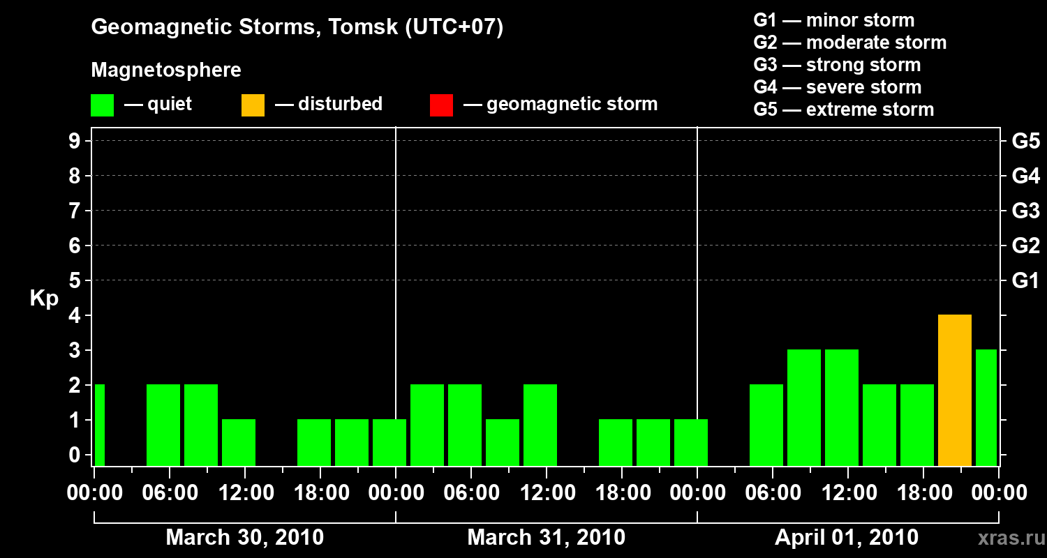 Geomagnetic storms in Tomsk — Apr 01, 2010