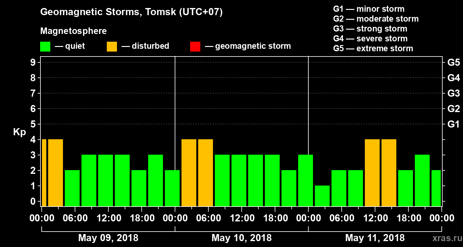 Geomagnetic storms in Tomsk on May 11, 2018