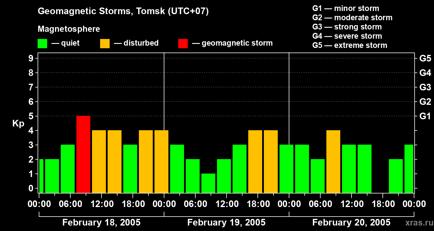 Geomagnetic storms in Tomsk — Feb 20, 2005