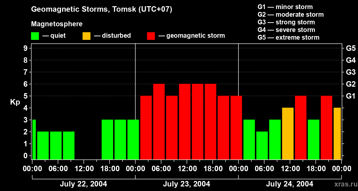 Geomagnetic storms in Tomsk — Jul 24, 2004