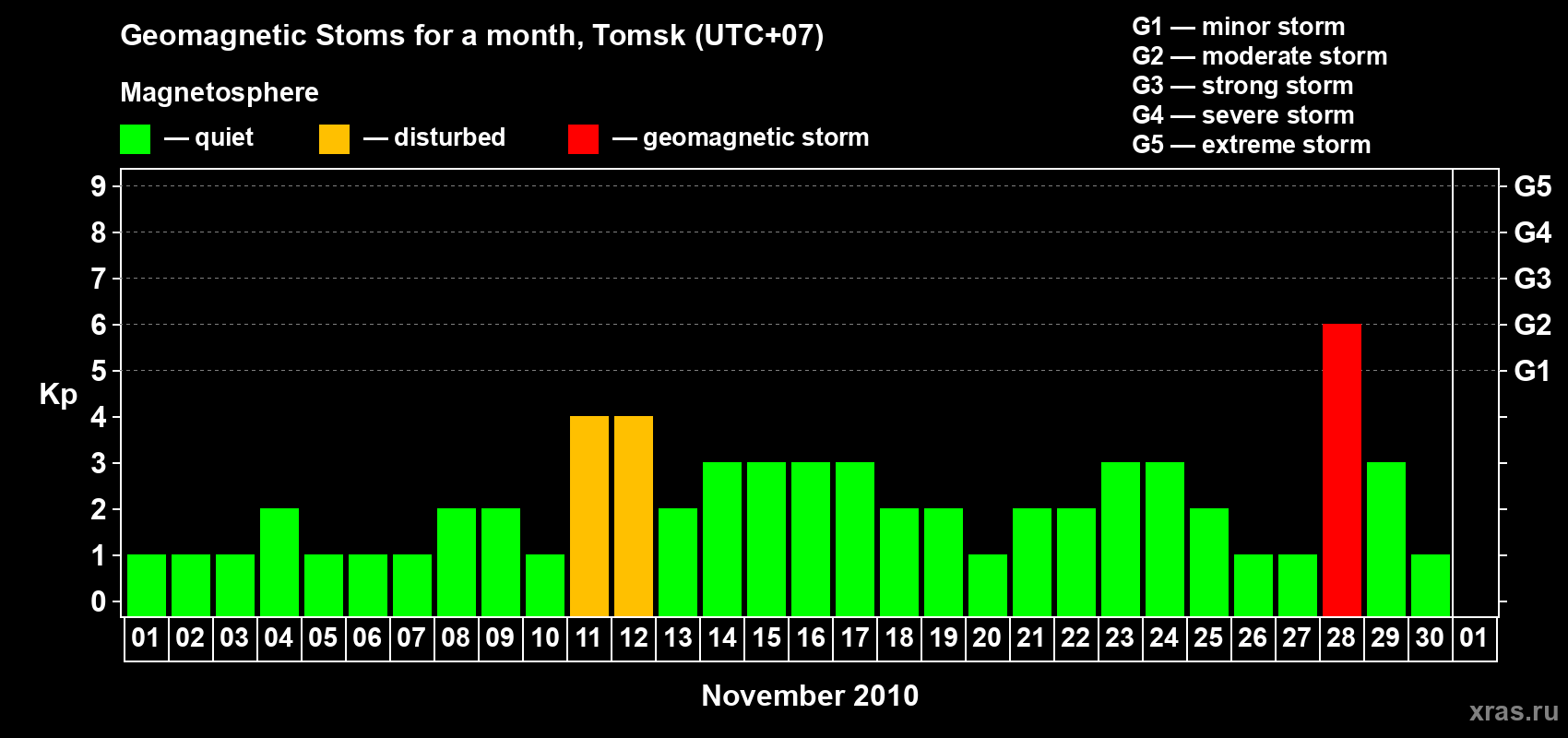 28 November 2010 — Magnetic storm of level G2