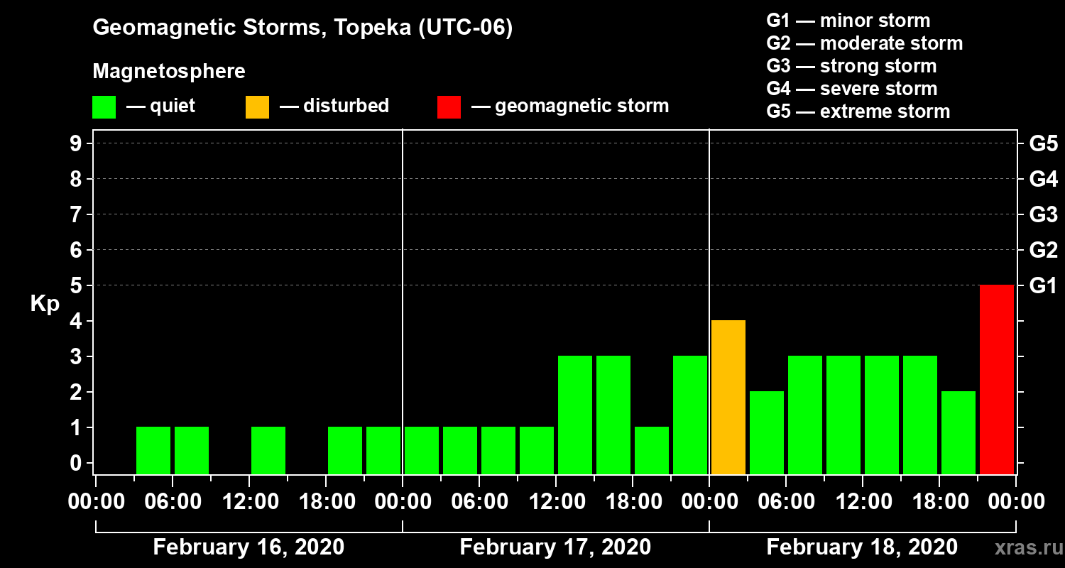 Geomagnetic storms in Topeka — Feb 18, 2020