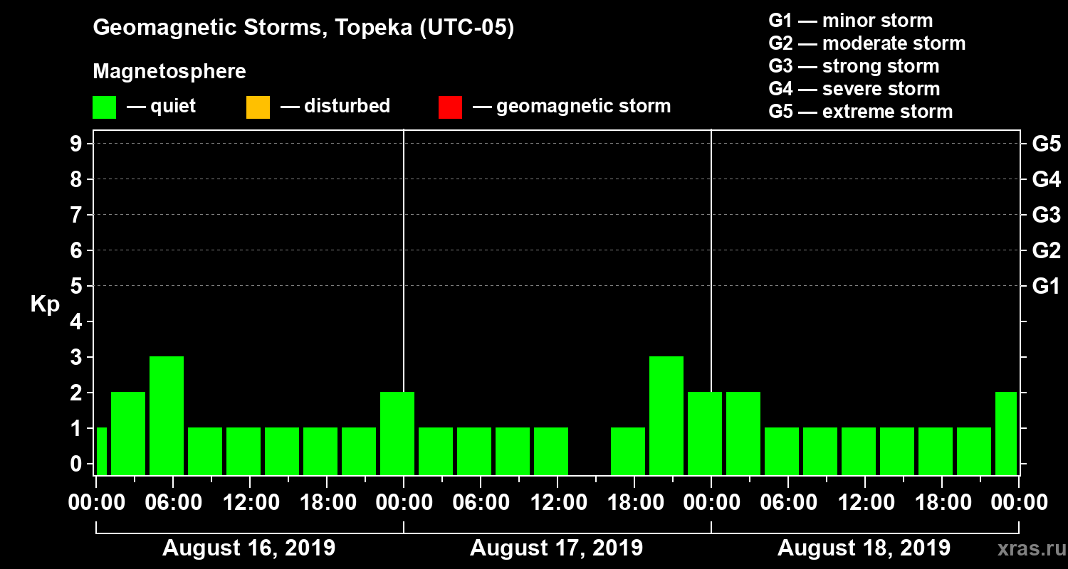 Geomagnetic storms in Topeka in August 2019