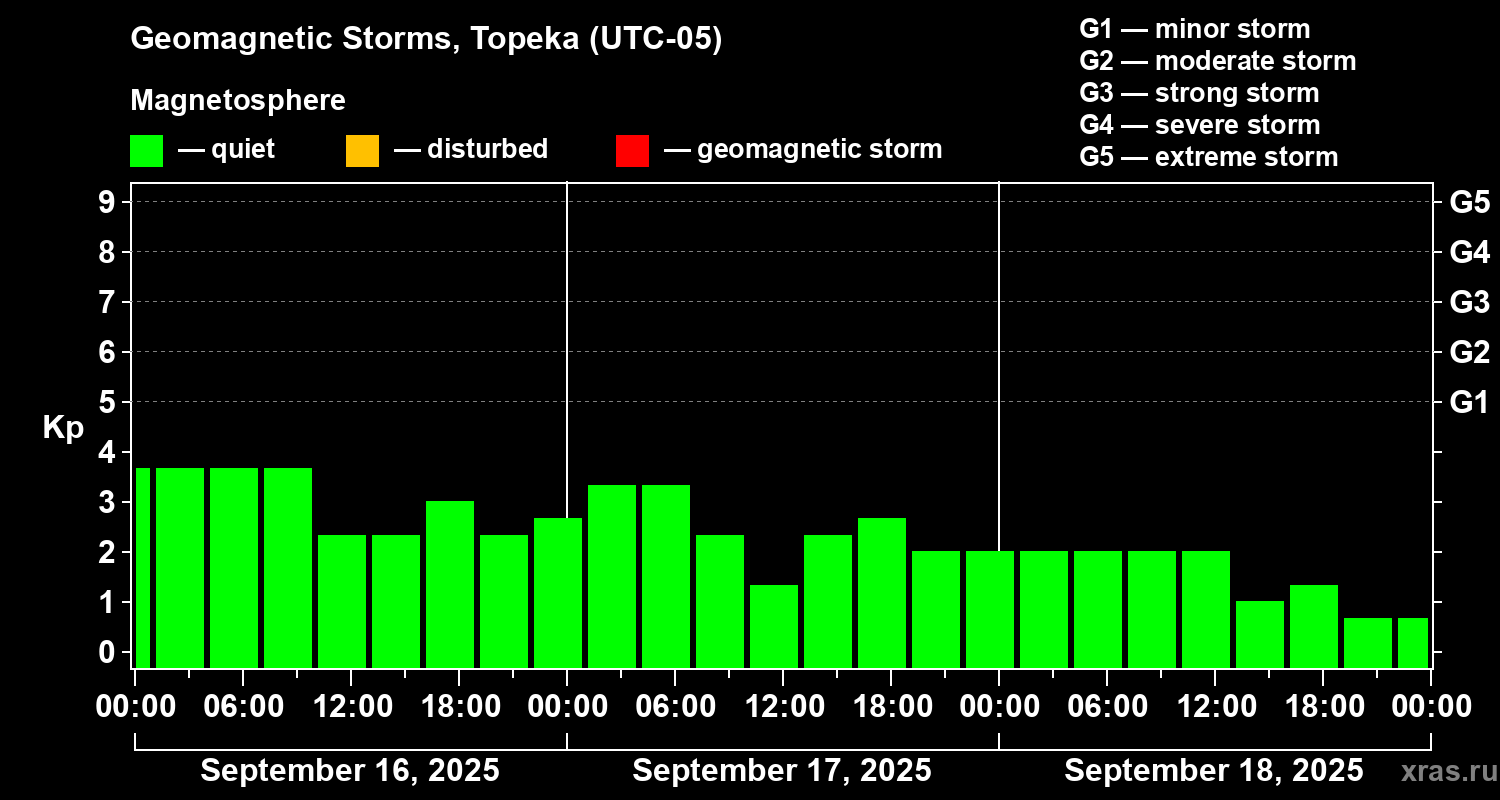 Geomagnetic storms in Topeka — Sep 18, 2025