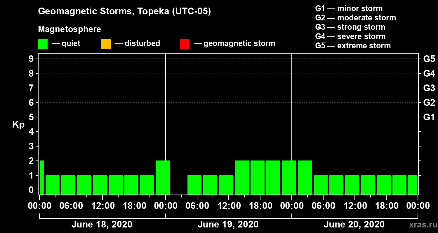 Geomagnetic storms in Topeka in June 2020
