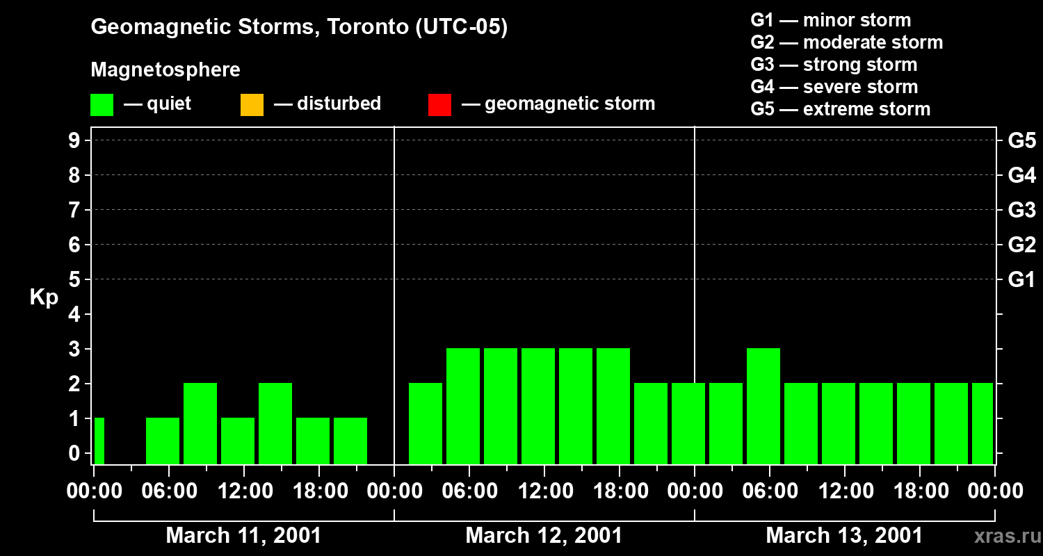 Geomagnetic storms in Toronto — Mar 13, 2001
