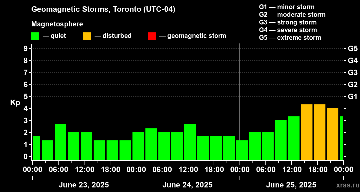 Geomagnetic storms in Toronto — Jun 25, 2025