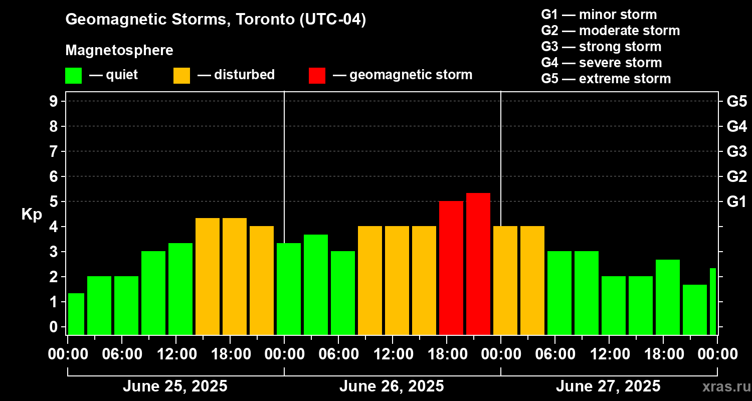 Geomagnetic storms in Toronto — Jun 27, 2025