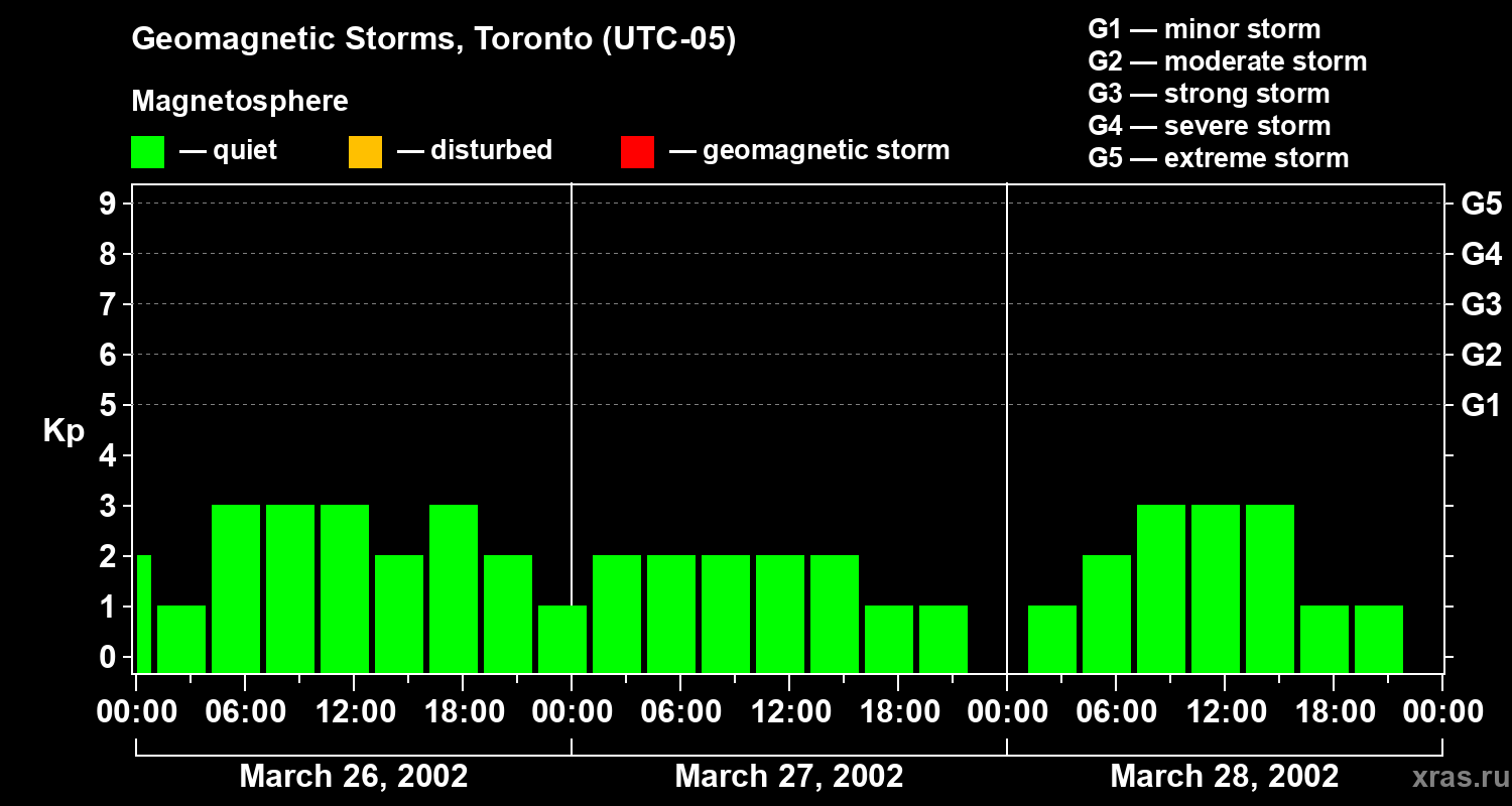 Geomagnetic storms in Toronto — Mar 28, 2002