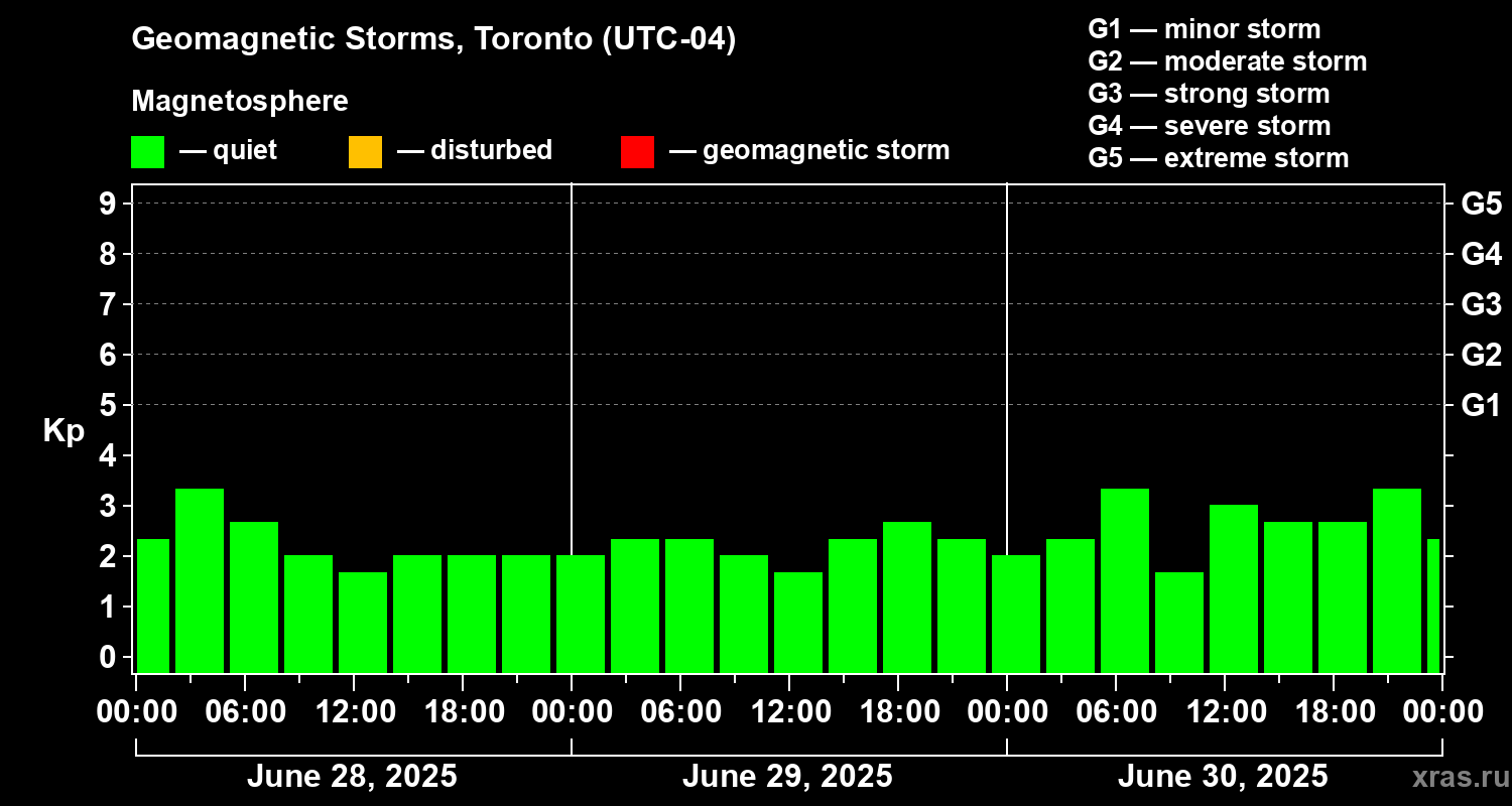 Geomagnetic storms in Toronto — Jun 30, 2025