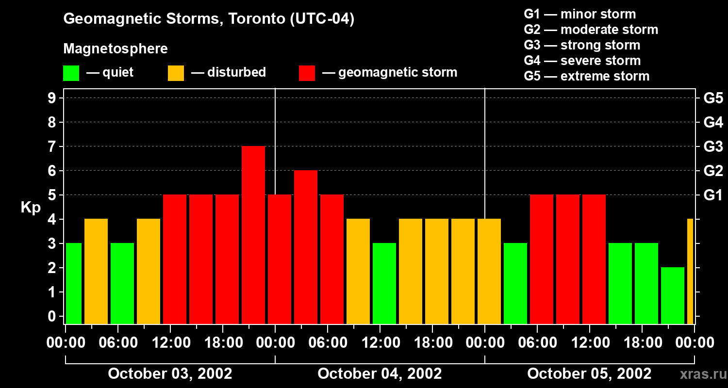 Geomagnetic storms in Toronto on Oct 05, 2002