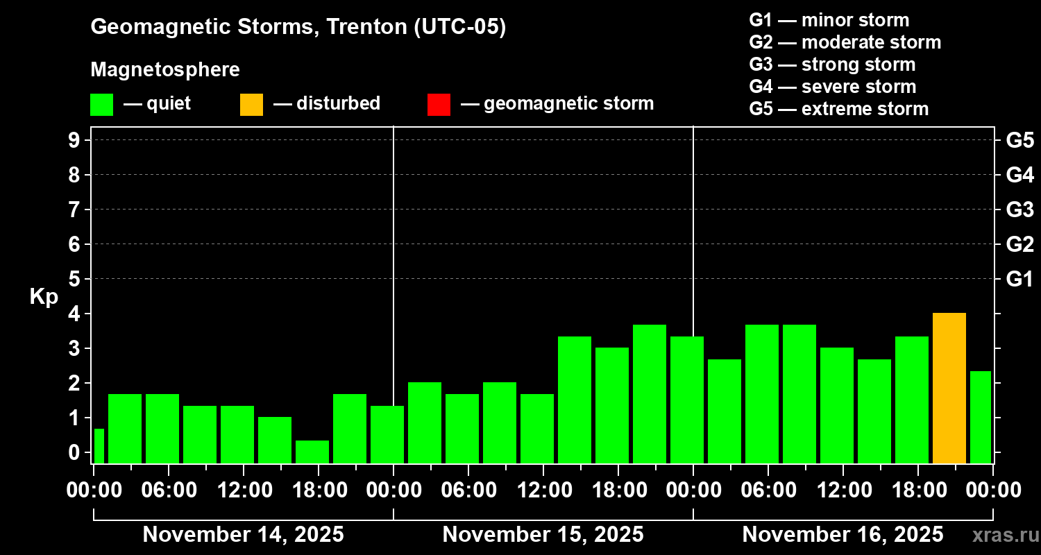 Geomagnetic storms in Trenton — Nov 16, 2025