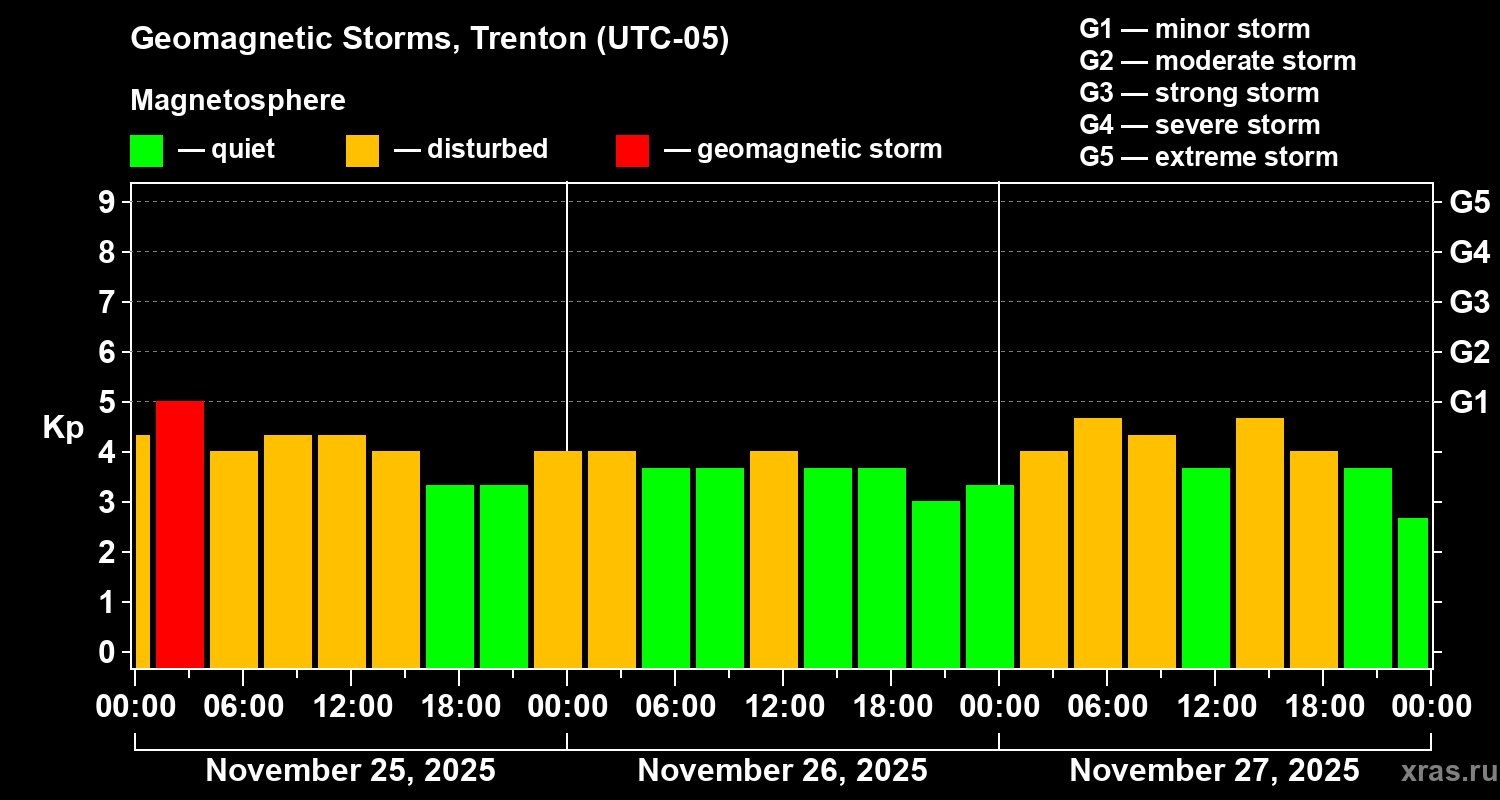 Geomagnetic storms in Trenton — Nov 27, 2025
