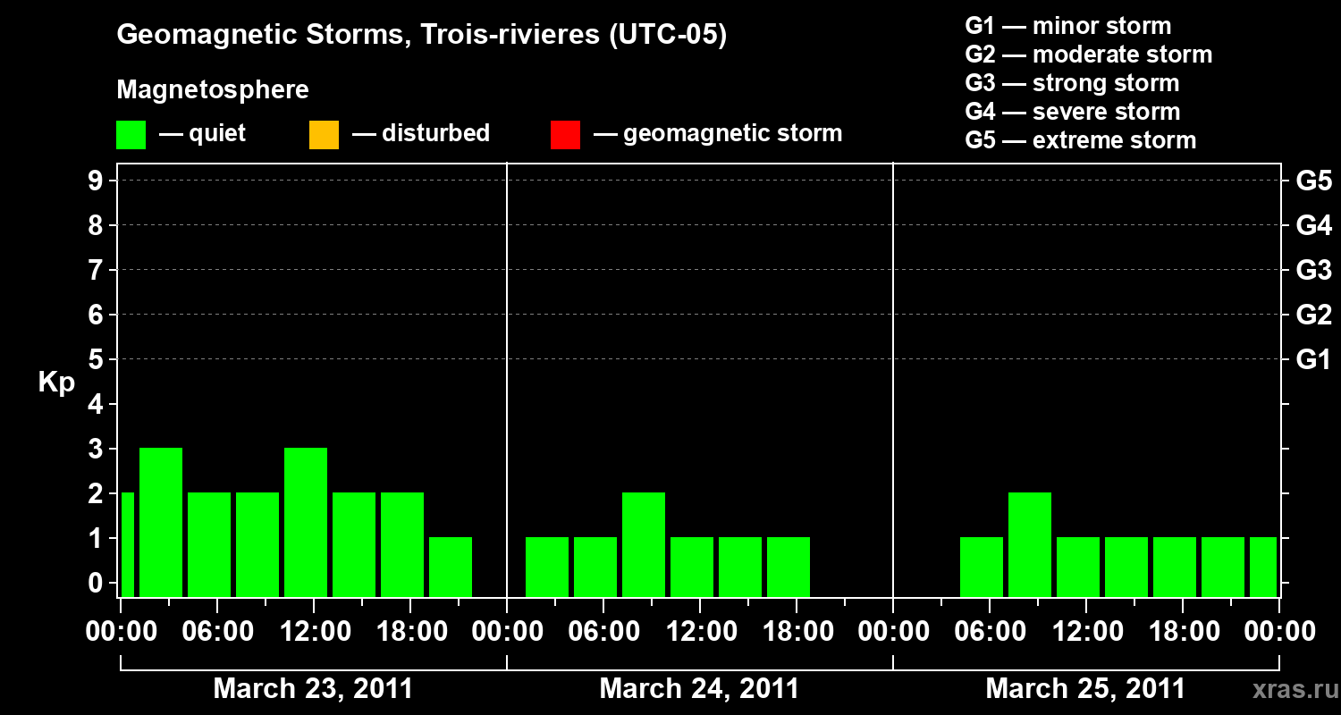 Geomagnetic storms in Trois-rivieres — Mar 25, 2011