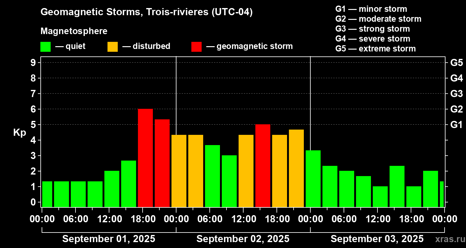 Geomagnetic storms in Trois-rivieres — Sep 03, 2025