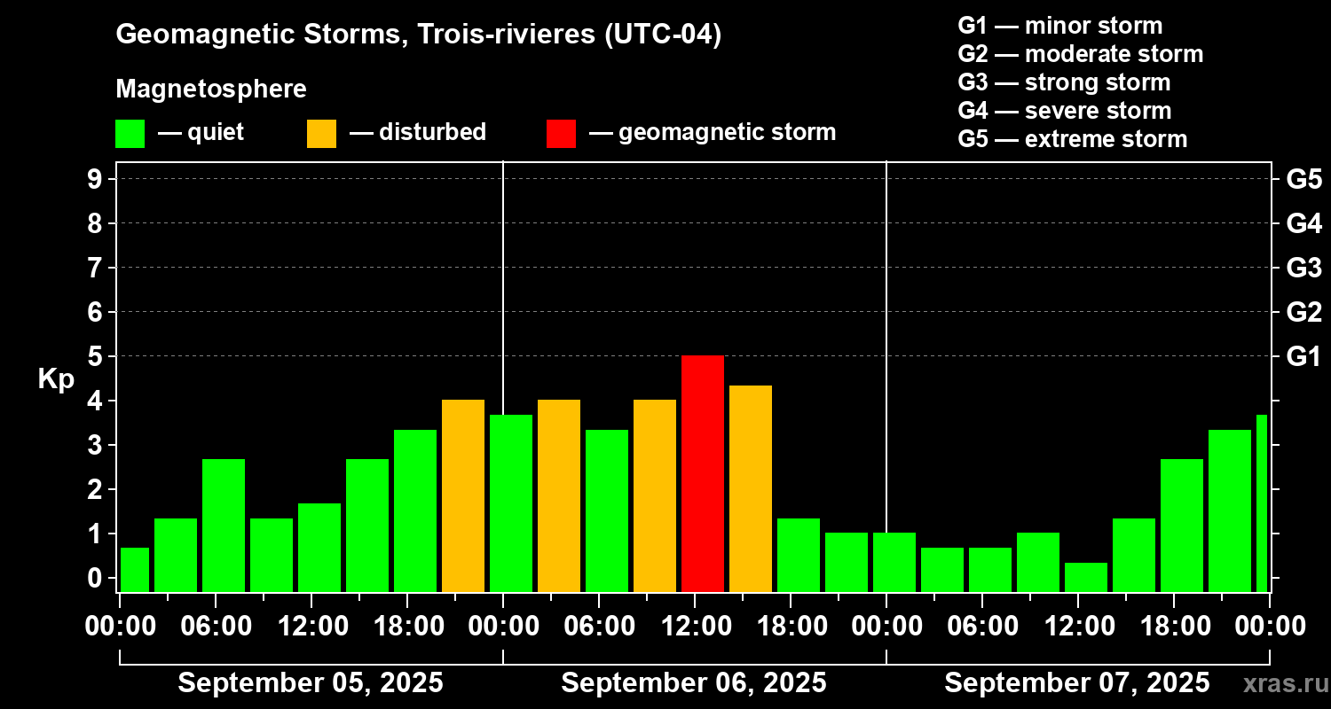 Geomagnetic storms in Trois-rivieres — Sep 07, 2025