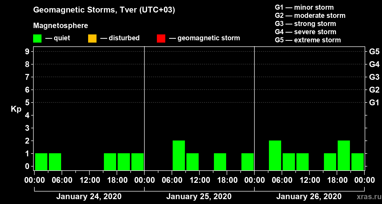 Changes in the geomagnetic index Kp from January 24 to 26, 2020 for mid latitudes