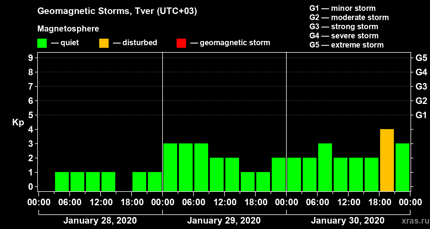Changes in the geomagnetic index Kp from January 28 to 30, 2020 for mid latitudes