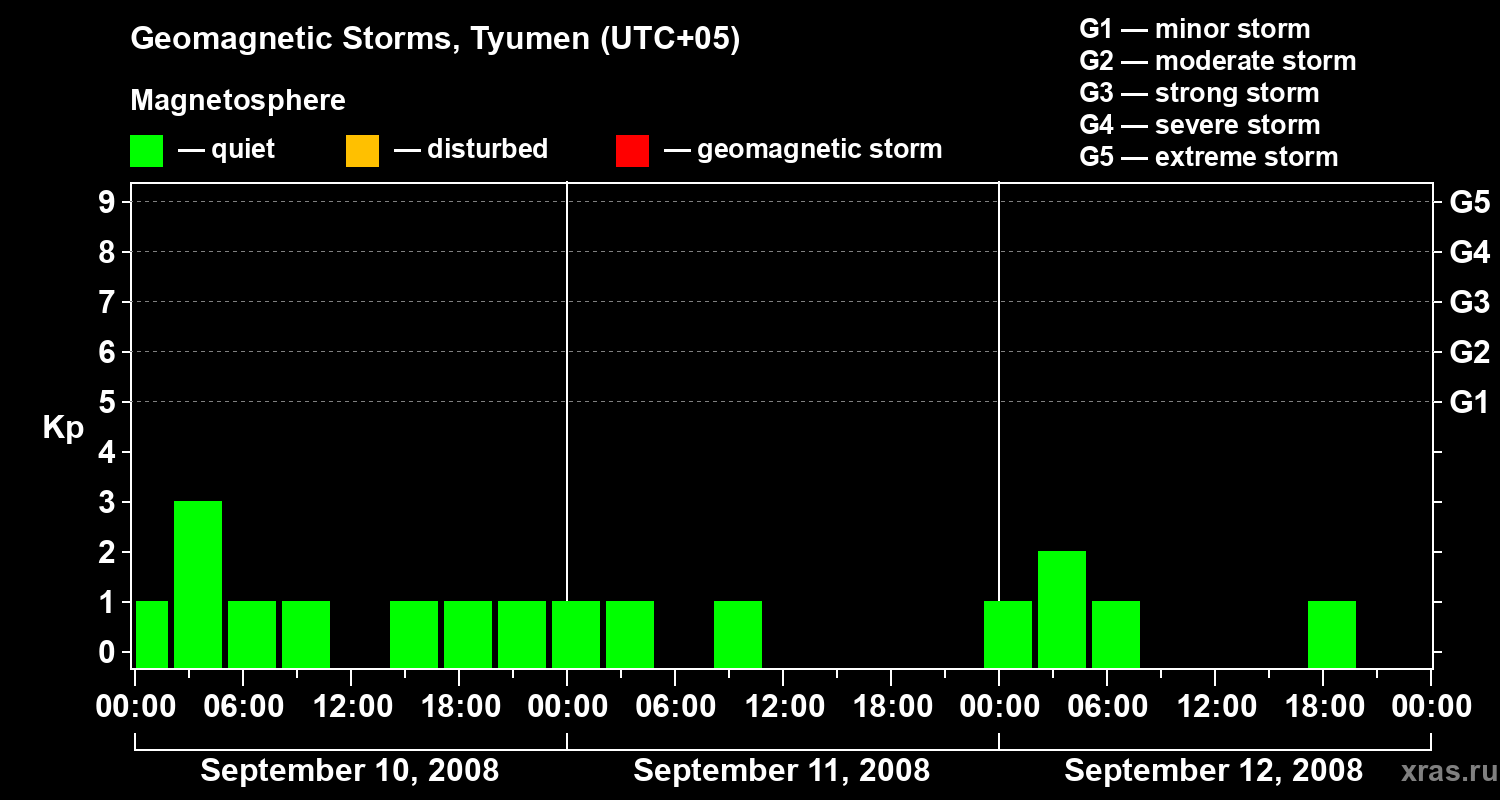 Geomagnetic storms in Tyumen on Sep 12, 2008