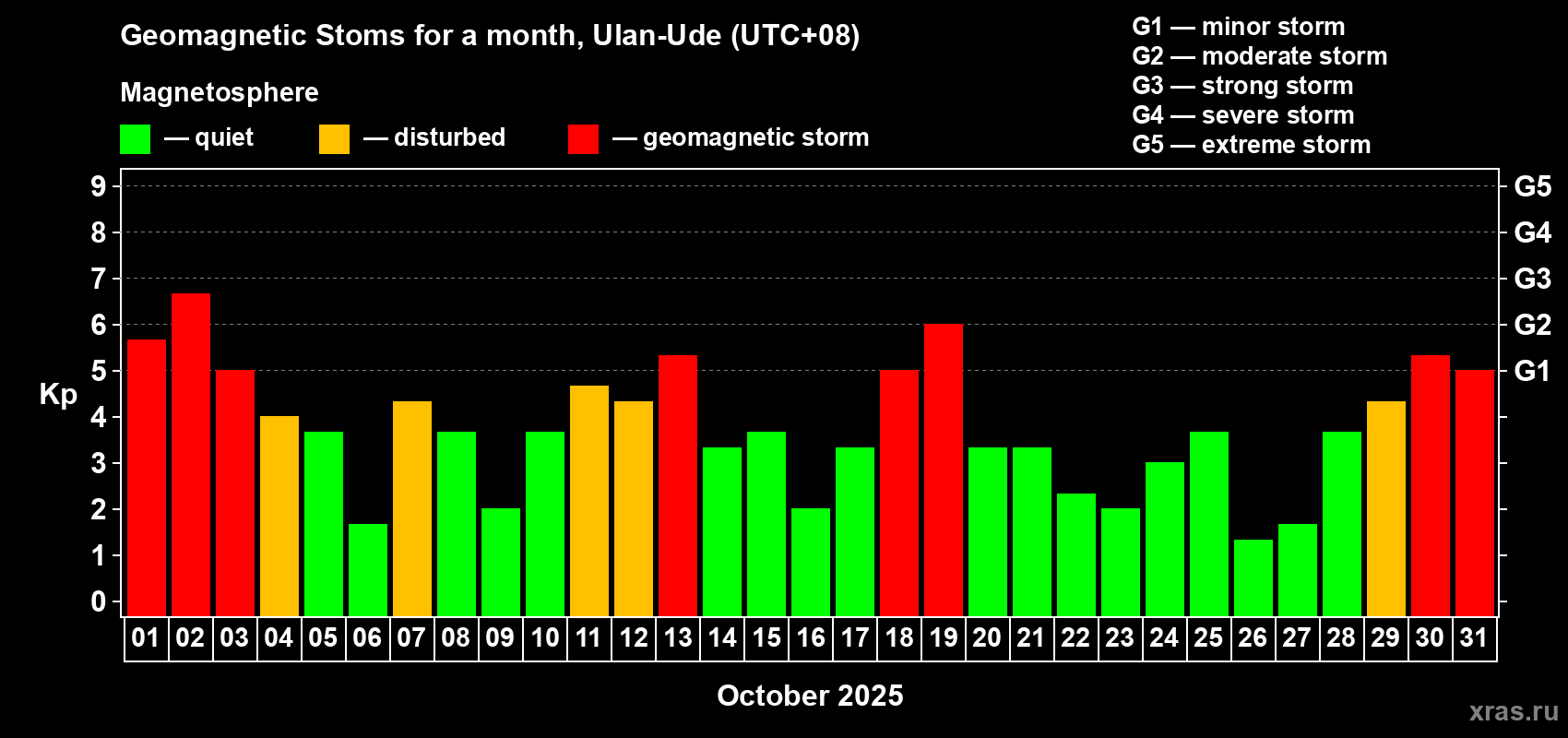 Geomagnetic storms in Ulan-Ude in October 2025