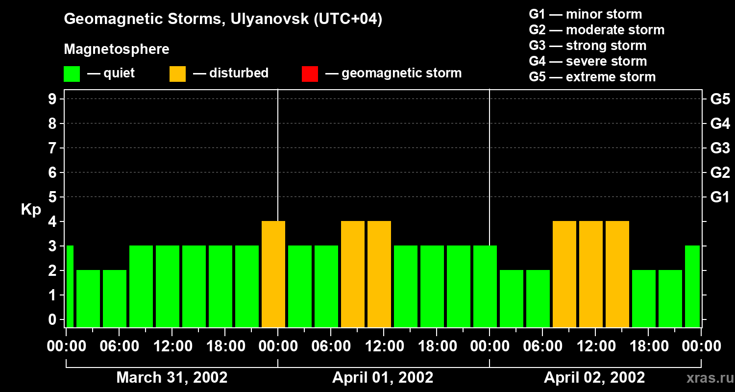 Geomagnetic storms in Ulyanovsk on Apr 02, 2002