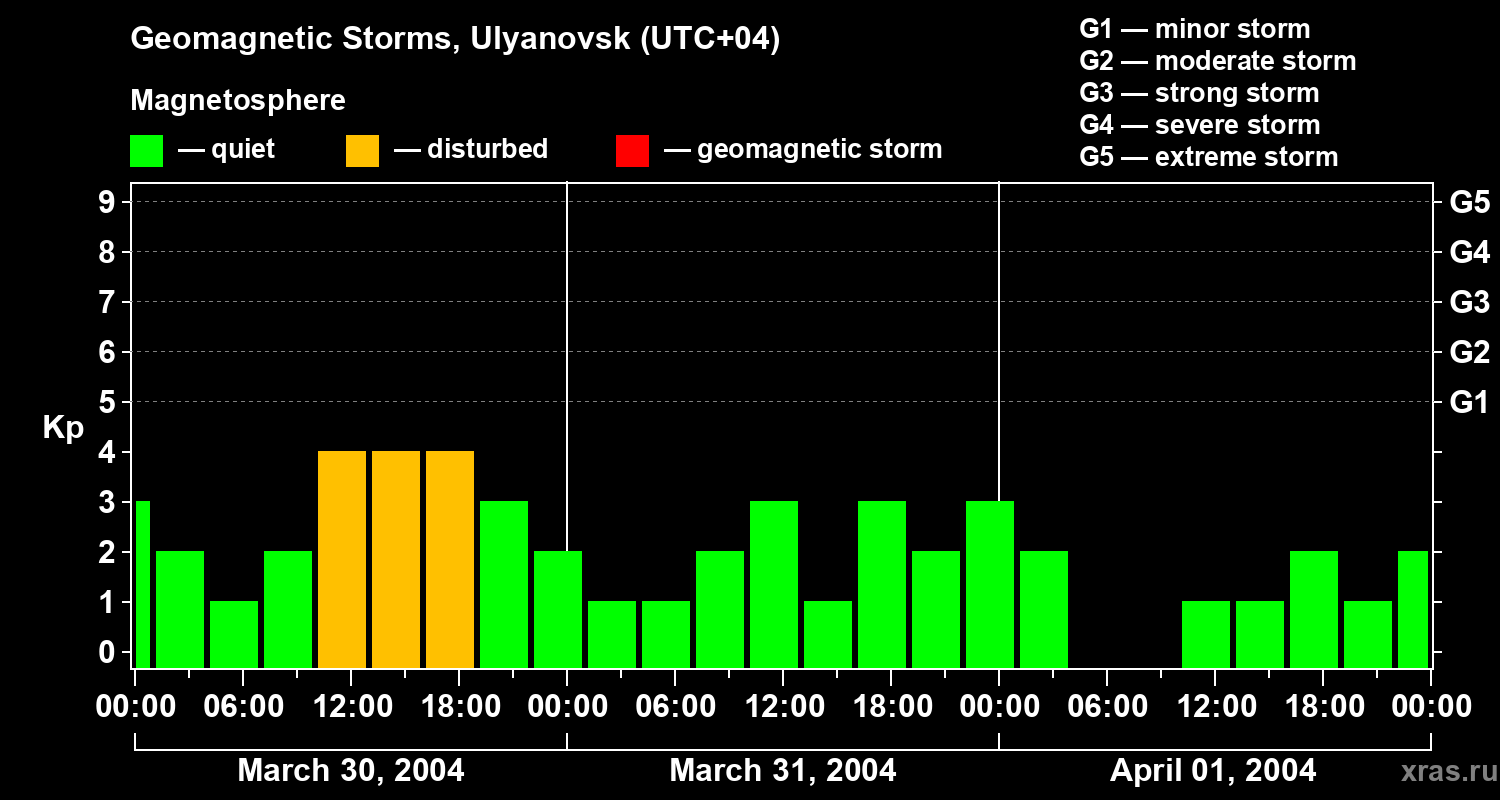 Geomagnetic storms in Ulyanovsk on Apr 01, 2004